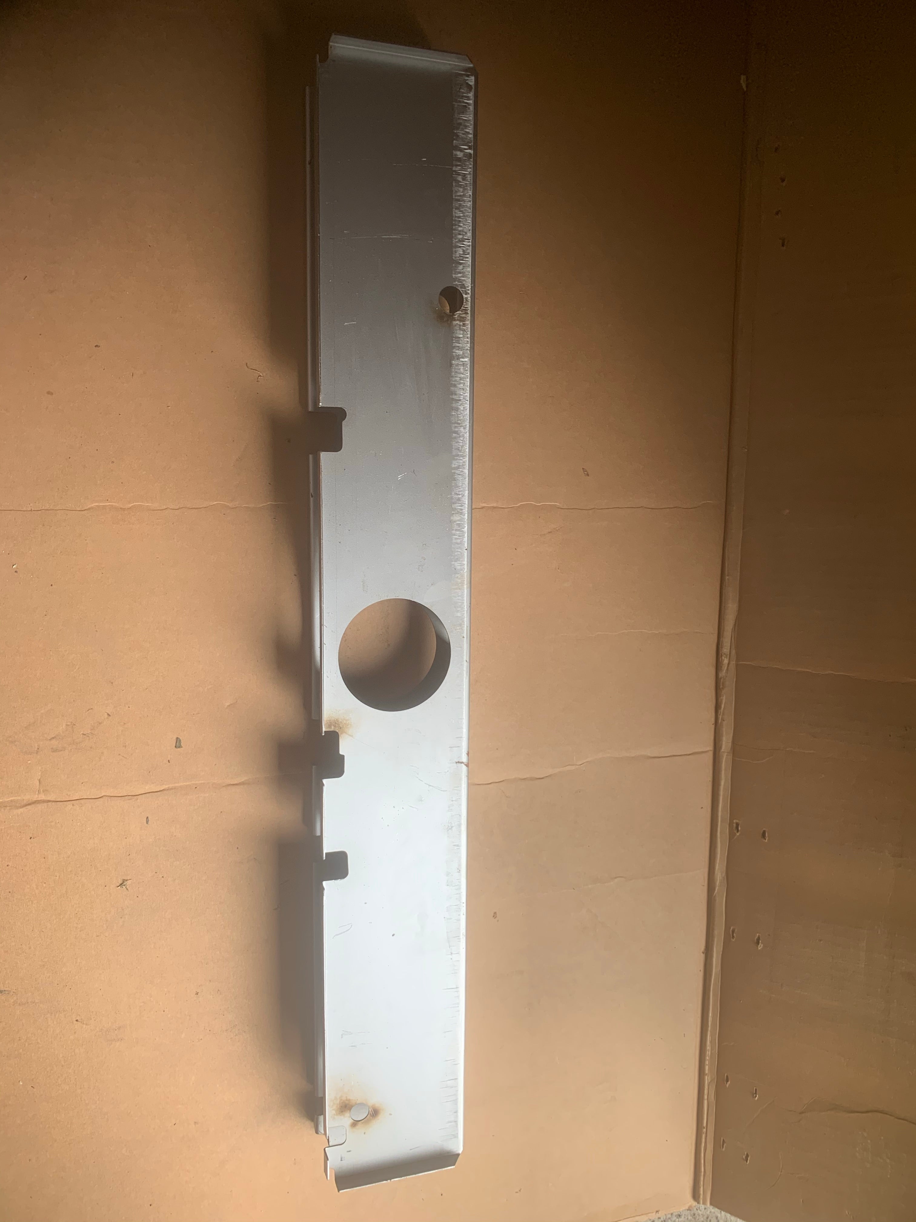 Rear chassis section between main chassis rails inline with outriggers. Includes all correct holes for heater tube and cable tubing. Laser cut and CNC folded in 1.2mm steel.