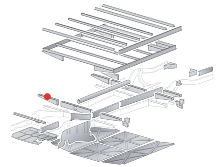 Fits between main chassis rail and front jacking point, below top hat section.
