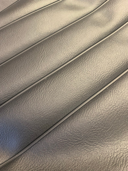 Made from single color basket weave vinyl for the base and back with matching smooth vinyl for the sides and skirts complete with matching piping.