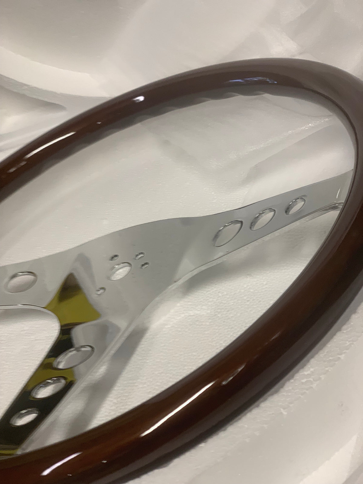 Beautiful classic wood with polished chrome spokes.