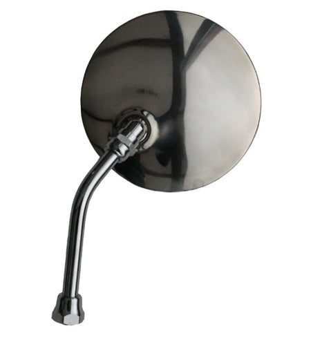 Round mirror head - mounted on a polished, chromed, curved arm. For left and right, sold separately. The mirror comes with all necessary installation hardware, ensuring a hassle-free upgrade, though it requires a threaded hinge pin for mounting, 111831421ALR