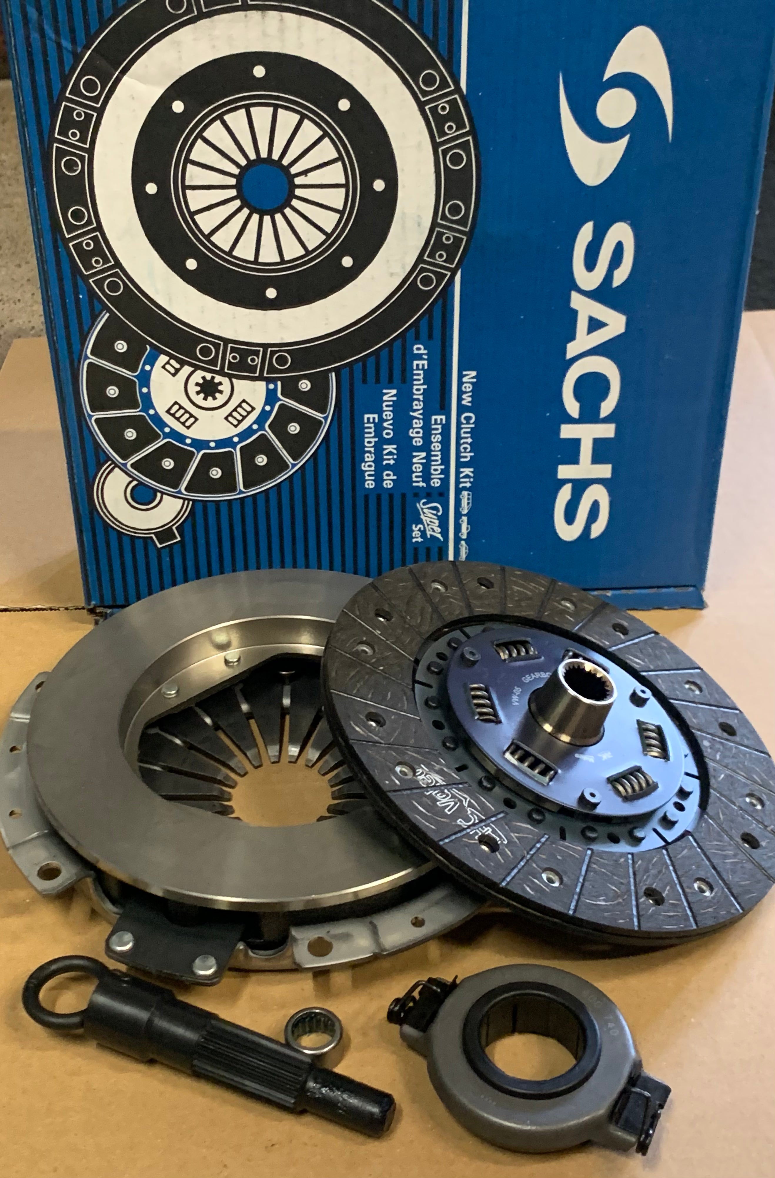 Sachs clutch kit 200mm - Comes with the clutch disc, clutch plate, and release bearing. Sachs Clutch Kit including clutch disc, pressure plate, throwout bearing, pilot bearing & alignment tool. We recommend having your flywheel machined before installing a new clutch kit.